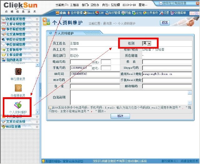 [点晴永久免费OA]关于如何更改系统用户性别(男女)的问题咨询及回复