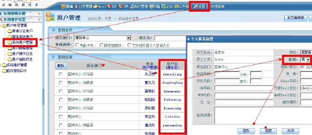 我在“系统用户管理”里查到用户后,点击后看到的用户资料里没有性别选项