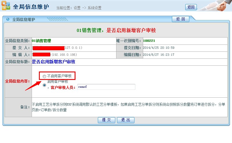解决办法:不启用了新增客户审核功能即可,操作如下图示: