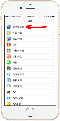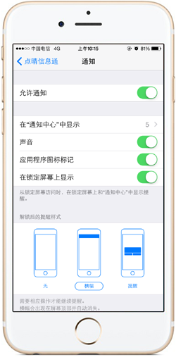 3.1.开启点晴信息通应用内部的通知功能,“设置 -> 开启新消息提醒”;