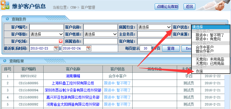 点晴永久免费OA的CDM和CRM客户信息管理模块中的客户作废后,如何找回恢复?
