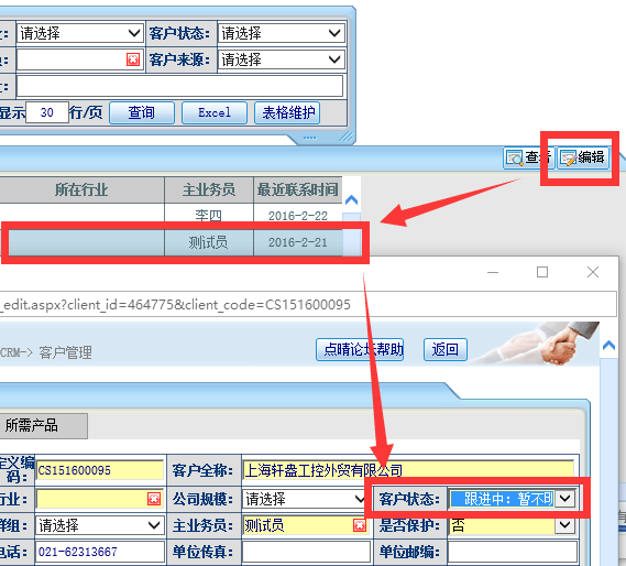 :点晴OA的CDM和CRM客户信息管理模块中的客户作废后,如何找回恢复?![]() 点晴OA中的客户不允许彻底删除,原因是如果彻底删除,会造成以往所有和该客户相关的信息出现逻辑错误,并且如果以后新增该客户的话,也无法调出以往的合作记录。确定不再合作或使用的客户,只能作废,系统会永久保存在数据库中,以后如果和这个客户恢复合作,可以将其恢复到正常状态。 作废在点晴OA的CDM或CRM模块中是通过客户状态来识别的,在客服信息中找到作废的客户,将状态改为相应的正常状态即可。 ![]() ![]() 该文章在 2018/12/27 18:12:36 编辑过 |
