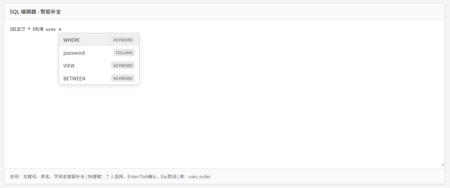 现代数据库管理工具中,SQL智能补全功能已成为提升开发效率的重要特性。它能够根据上下文环境自动提示关键词、表名、字段名等信息,大大减少了手动输入错误和查询文档的时间。这种智能化的代码辅助功能不仅提高了编写SQL的准确性,还能帮助开发者快速回忆表结构和语法规范。本文将介绍如何使用HTML、CSS和JavaScript实现...