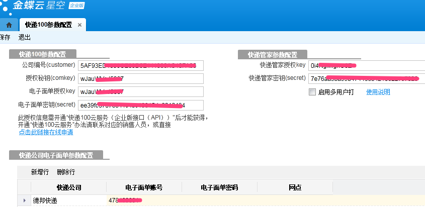 背景说明:涉及到快递100的两个接口:A.快递接口API,分基础版和企业版;B.快递管家API,分导入服务和推送服务。只需查询物流信息并刷新回金蝶云上,需手工维护好单据上的快递公司和快递单号。申请电子面单,然后得到电子面单链接,在浏览器中打开链接右键可实现打印,但无法批量打印。2021-3-25补丁支持按模板批量打印,...