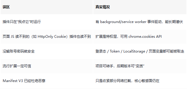过去很长一段时间,我几乎什么浏览器插件都敢装:调试、翻译、抓包、下载、效率提升……直到我拆了一款热门“资源分享”类扩展的代码,才真正意识到:很多扩展拥有的权限,几乎等同于在你的浏览器里放了一个“贴身代理”。很多人还停留在“插件≈一个小工具”层面,但从权限模型看,它们可以做到的远超你的想象。 目的:本文科普浏览器扩展权...