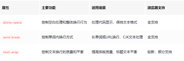 在网页设计中,文本内容的显示方式对可读性和整体视觉效果至关重要。CSS提供了多个属性来控制文本的换行和空白处理,其中最常用的是text-wrap、white-space和word-break。本文将详细介绍这三个属性,并比较它们的异同。 属性详解1.white-space属性white-space属性控制元素内空白的...