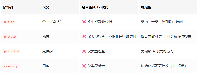 在TypeScript和JavaScript中,类成员变量(属性)的修饰符(Modifiers)用于控制其可见性、可访问性和可变性。两者在能力上有显著差异:TypeScript提供了更丰富的编译时修饰符,而JavaScript(ES2022起)引入了运行时私有字段。 下面从TypeScript和JavaScript两...