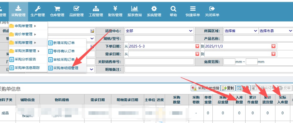 ​:如何在采购单上显示或体现已交数量、未交数量以及订单状态(是否正常结案)? ​ 答:在采购查询界面勾上对应的栏位,再查询。同时在打印单据时,一般采购单的状态就是“未结案”的。教程:点晴ERP表格维护操作http://11373.oa22.cn 追问:比如一批货采购数量100PCS,实交95PCS,5PCS未结案...