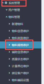 点晴ERP-物料规格维护-操作流程 1.进入ERP系统之后,在左侧的功能菜单里找到“系统管理”,点开“物料管理”,点击“物料规格维护”。 2.点开进入界面后,上方是进行规格查询的,点击选择物料类别,然后点击查询。下方是新增规格的,也是同样选择物料类别,填写具体规格,然后点击增加。 备注说明:​1、“排序”...