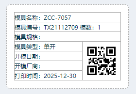 【点晴模切ERP】模具信息如何生成二维码?进入工程管理模块,找到:模具(刀模)管理-》模具(刀模)管理页面,选中需要打印二维码的模具代码,点击打印即可。