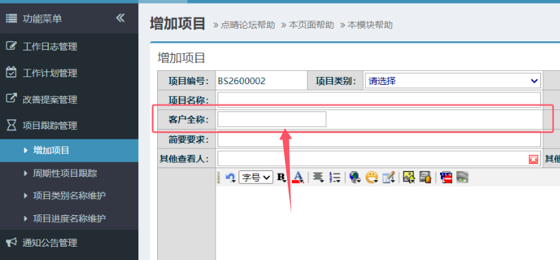 项目跟踪管理中增加的自定义字段显示宽度不够,如何设置加宽?​ 注意增加自定义字段时,有一个“字段绑定CSS(宽高颜色等)”属性设置:在里面加入CSS控制代码:“width:100%;”即可,保存后,就会看到该字段宽度撑满整个单元格了。​