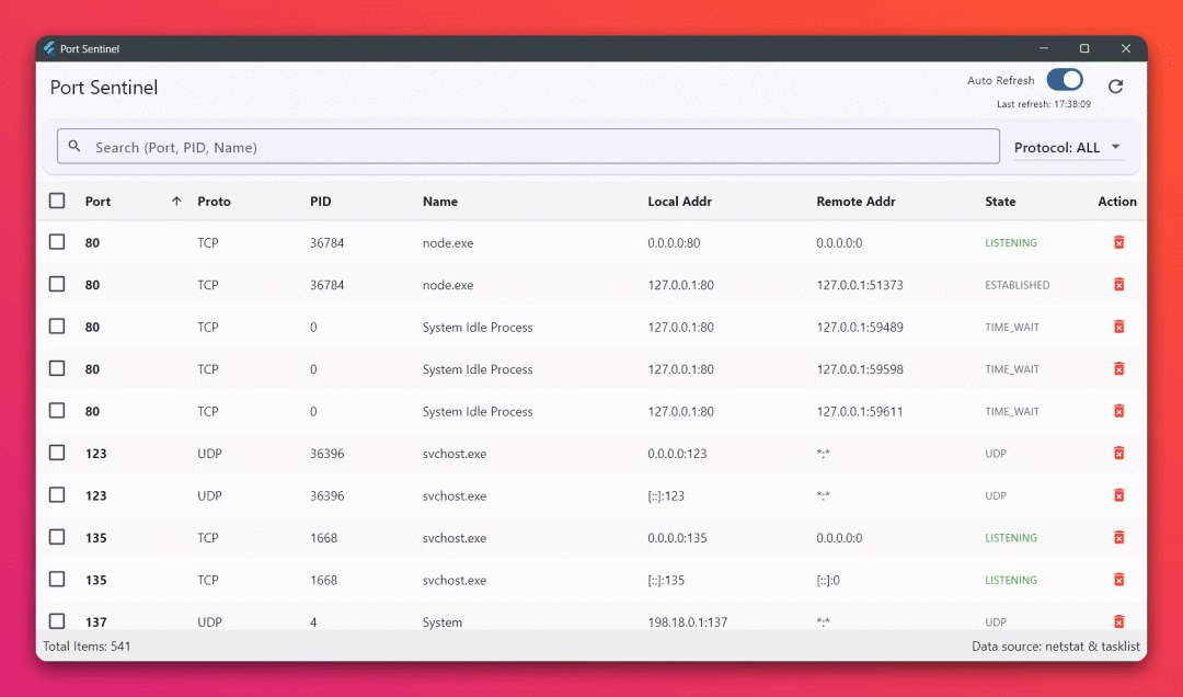 Windows开发最烦的就是启动服务时报“端口被占用”。虽然netstat-ano配合taskkill也能解决,但每次都要敲命令查PID再杀进程,确实挺磨叽。GitHub上这个PortSentinel(作者Sanjeever)就是个专门解决这个痛点的Windows桌面应用。它是基于Flutter开发的,提供了一个直观的...