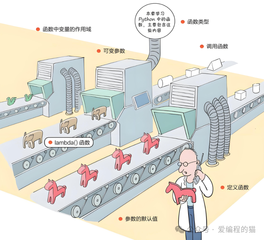 导读简要介绍:本文改编知名作家-关东升,一个在IT领域摸爬滚打20多年的老程序员、软件架构师、高级培训讲师、IT作家。8.1定义函数自定义函数的语法格式如下:以英文半角冒号结尾例代码如下:8.2调用函数在定义好函数后,就可以调用函数了,很简单!8.2.1使用位置参数调用函数在调用函数时传递的实参与定义函数时的形参顺序...