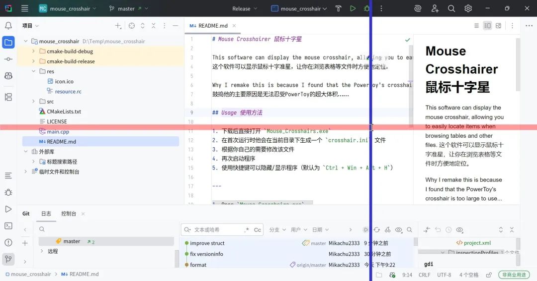 鼠标十字准星MouseCrosshairer一款仅470KB的单文件开源Windows工具,按下快捷键即可在屏幕上生成可自定义的十字准星,帮你快速对齐表格、像素作图或录屏演示;支持颜色、粗细、透明度、多显示器、自定义热键,下载双击即用,无需安装。项目地址https://github.com/Mikachu2333/Mo...
