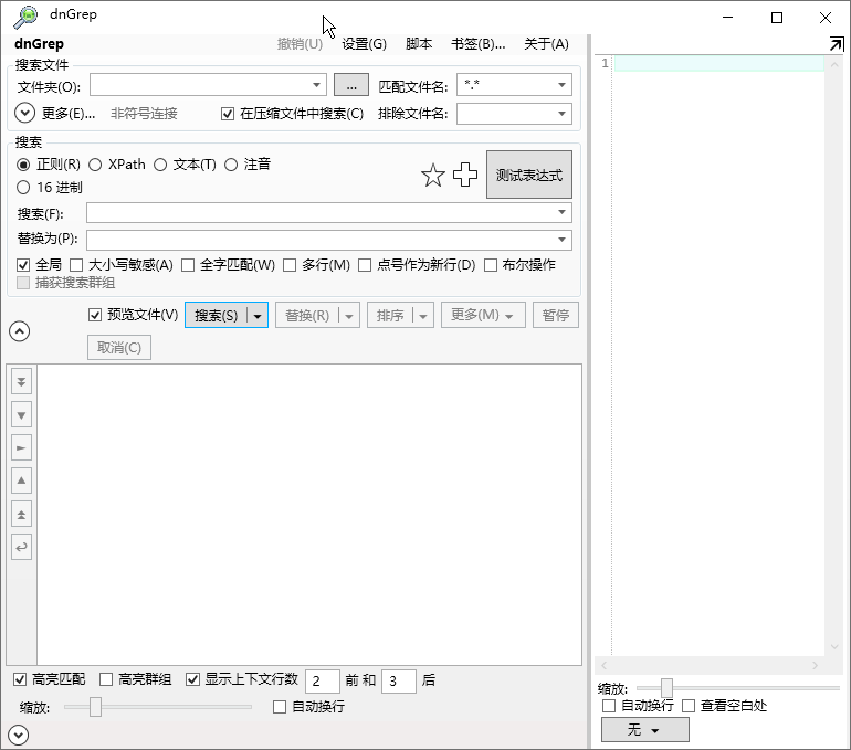 dnGREP(强力文件搜索工具)功能:一款支持全文搜索的本地文件搜索工具,可查找文本、Word、PDF、ZIP等格式文件中的内容,支持正则表达式、高亮结果、替换文本、批量操作等强大功能。优点:完全免费开源,搜索速度快,界面简洁,支持插件扩展,无广告,支持多种编码与语言环境。适合谁:经常处理大量文本、需要高效查找/替换文...