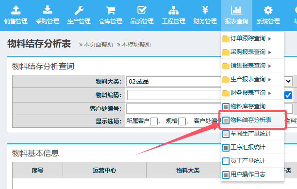 【点晴模切ERP】如何实现以生产工单号查询到对应的物料使用批次,便于查询和追溯物料异常的范围进入仓库管理-》物料流向管理-》物料出入库流水明细中(如果看不到此菜单,则应该向管理员申请开放此菜单访问权限):在物料出入库流水明细查询页面,根据实际需要查询的单据类型,选择单据编号中的类型为:销售/采购/生产,然后输入销售单/...