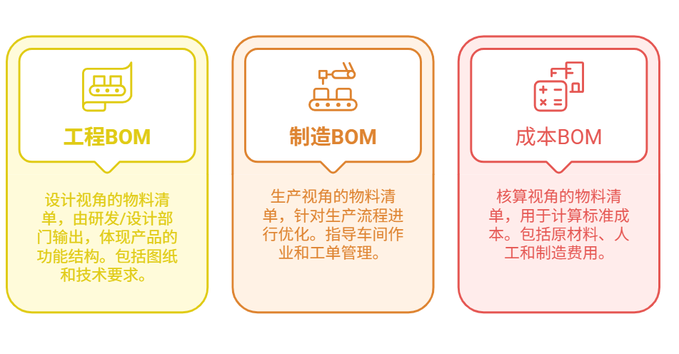 什么是BOM?BOM就是产品的“物料清单”,列出做一个产品需要哪些零件和材料。但不同部门看问题的角度不一样,所以会有三种BOM:工程BOM、制造BOM、成本BOM。三种BOM的区别工程BOM(EBOM)谁管:设计部门重点:设计需要哪些零件,规格尺寸是什么举例:笔记本电脑设计图里写着屏幕、主板、键盘、电池……但不会写装配...
