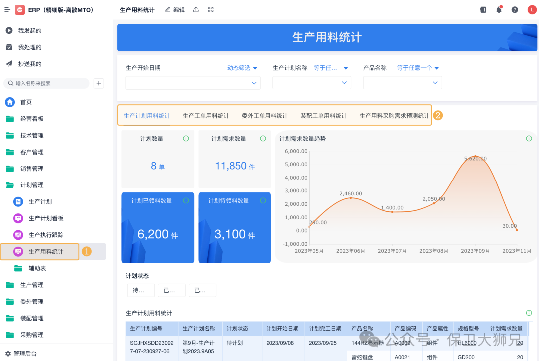 • 物料需求管理:根据生产计划,计算出每个生产阶段需要哪些物料,及时下单采购,避免因物料短缺而导致的生产延误。