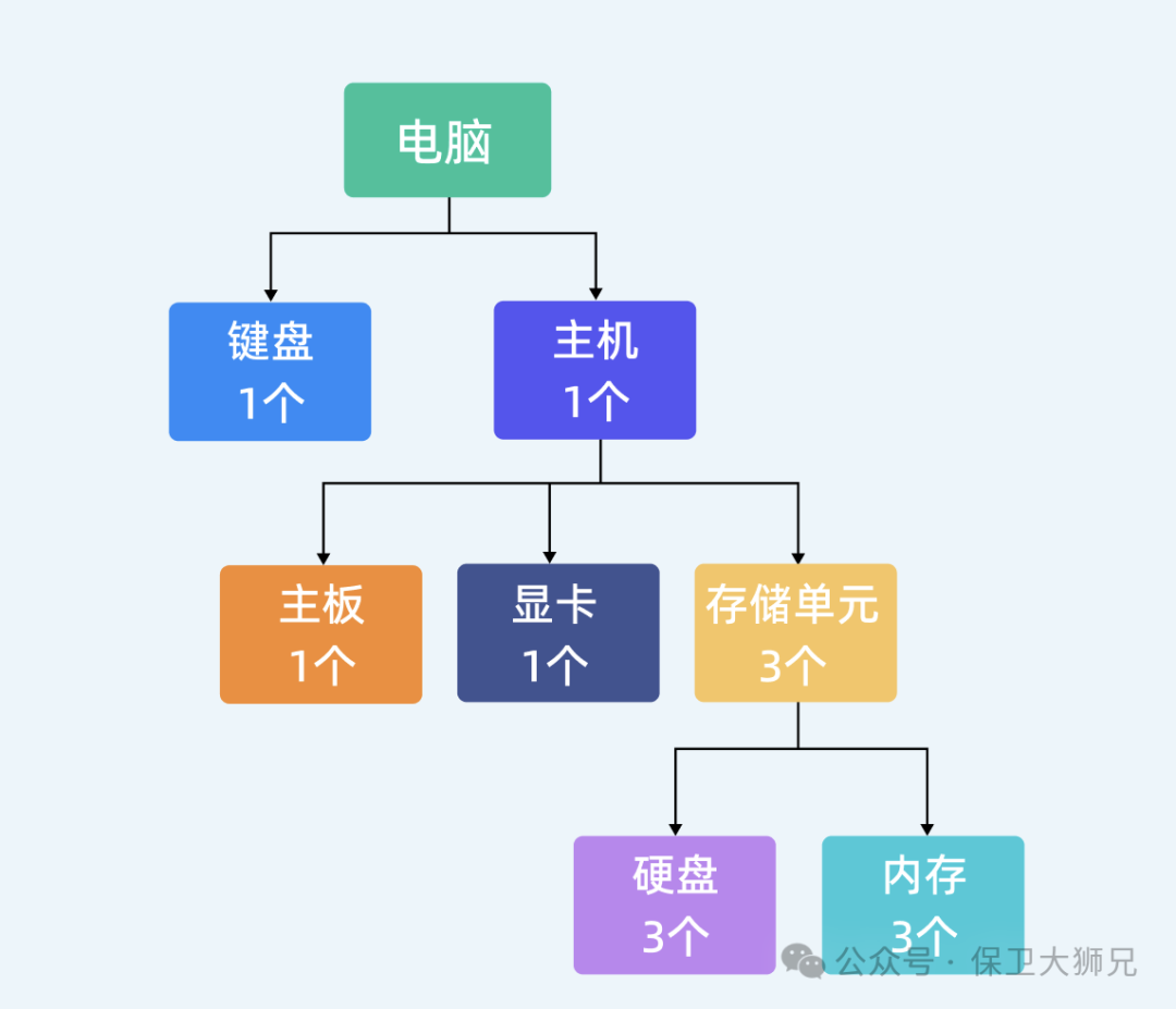 • 单层BOM:列出每个成品所需的零部件,结构简单,适用于结构不复杂的产品。
