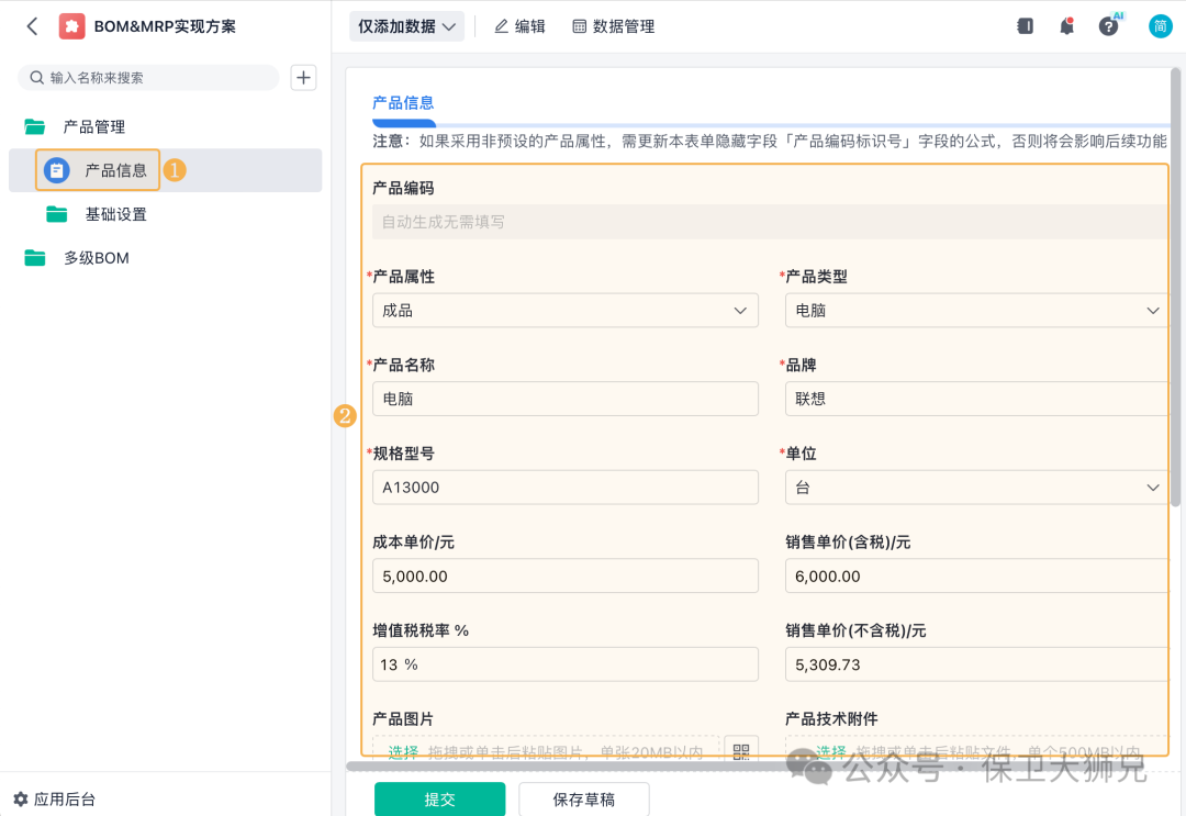 • 标准化管理:BOM为生产提供了标准化的物料需求清单,生产计划、采购部门都可以依据它来准确制定采购计划和生产计划。