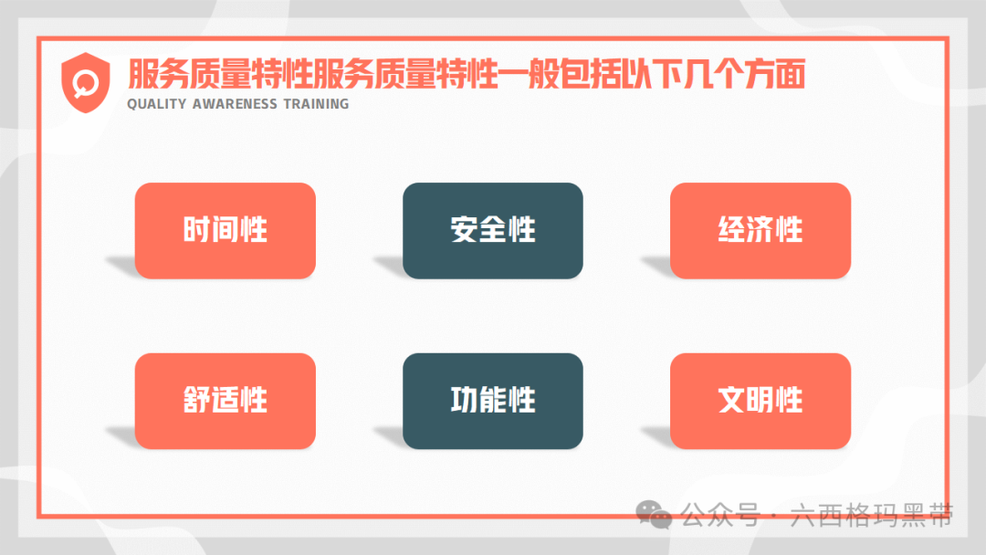 • 安全性:服务过程中保障客户财产和人身安全的特性。