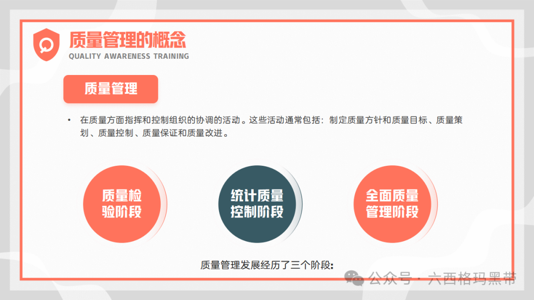 这一观念强调了生产过程控制的重要性。检验只是对产品质量的验证手段,而真正的质量是在生产过程中形成的。因此,企业必须重视生产过程的每一个环节,确保每个环节都符合质量标准,从而生产出高品质的产品。