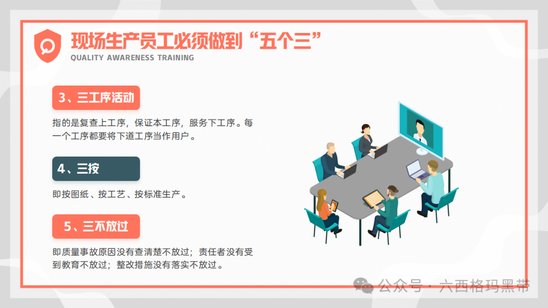 现场生产员工是产品质量的直接创造者,他们的质量意识直接关系到产品的最终质量。因此,员工必须深刻理解并践行“五个三”的质量管理理念,以确保产品质量的持续提升。