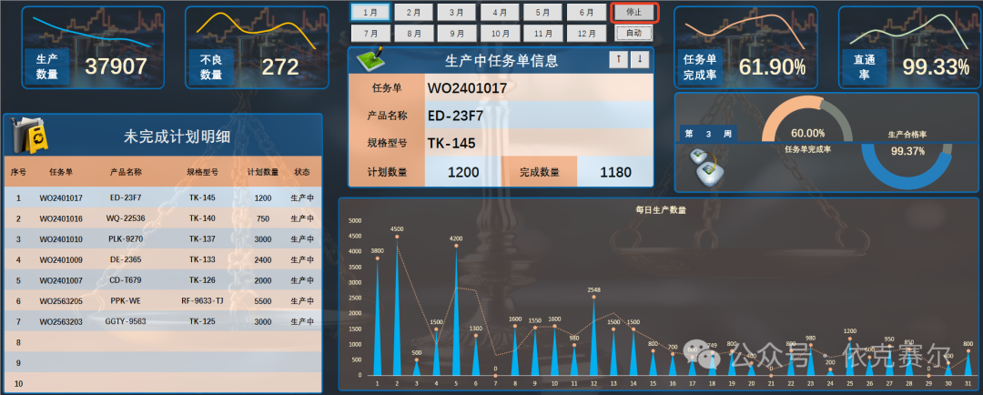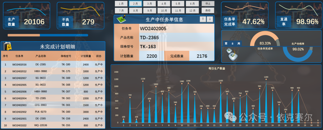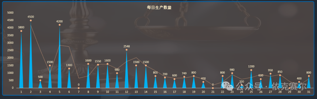 2.3 生产数量统计:图表右下方通过柱状图的形式统计当月每日生产数量。