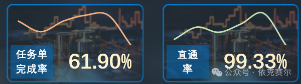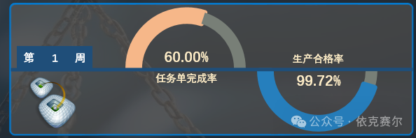 2.4 环形图:图表右侧通过两个环形图统计当月每周的任务单完成率和生产合格率,且周数可根据需要自动循环切换。