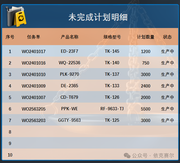 2.2 未完成计划明细:未完成计划明细显示当月所有为完成状态的任务单信息,当前信息也可一键循环播放查看。
