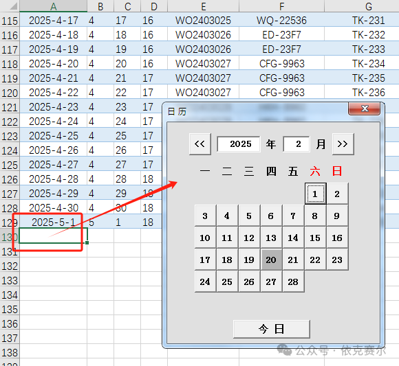 5.1 日期录入:在日期列双击空白工作表,可打开日期选择窗口,实现日期的快速录入。