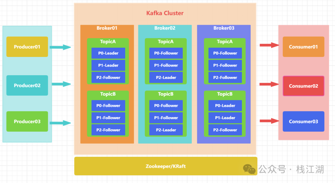 生产者(Producer):将消息发送到主题的分区(Partition)。