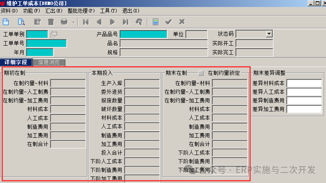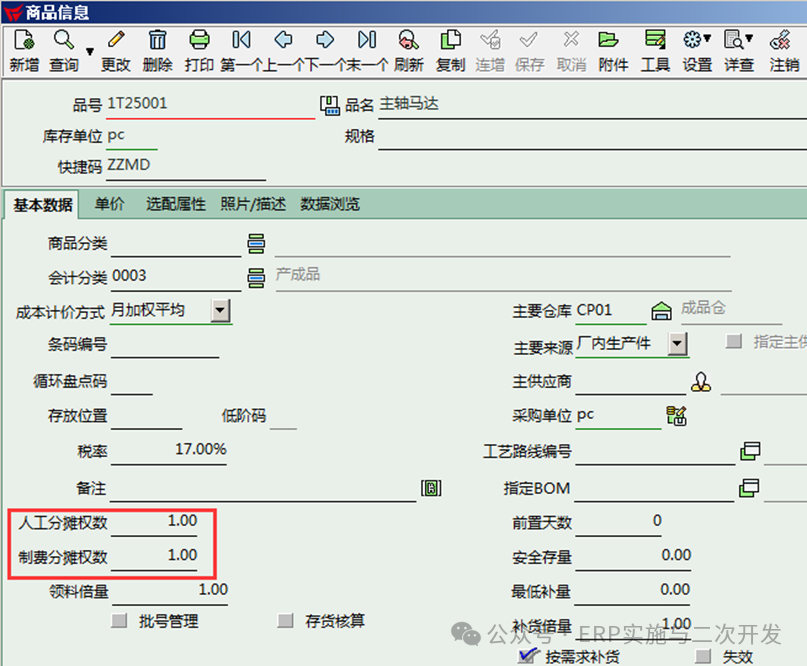 生产成本 | 在产品成本支持在制约量,支持按实际或权数分摊制造费、人工费 | 按人工、制分摊权数 分摊人工制费 |