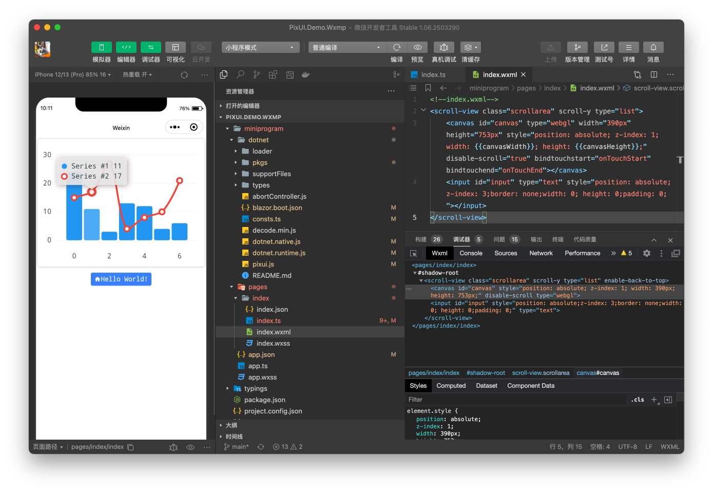 7. 用Wechat Devtools打开PixUI.Demo.Wxmp工程即可运行