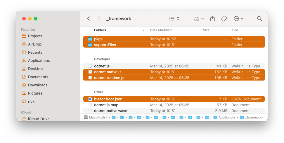 5. 将如图所示的目录及文件复制进PixUI.Demo.Wxmp/miniprogram/dotnet目录内