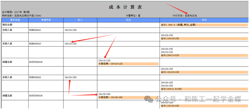 5.1计算公式:出库成本单价=同一批次(期初金额+本次出库前收入金额)/(期初数量+本次出库前收入数量)