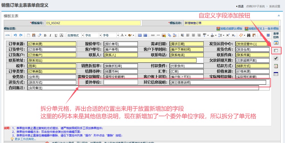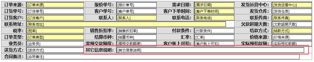​以上说明了如何对销售订单添加新的自定义字段,下面说明如何在送货单打印模板中调取并显示以上自定义字段。