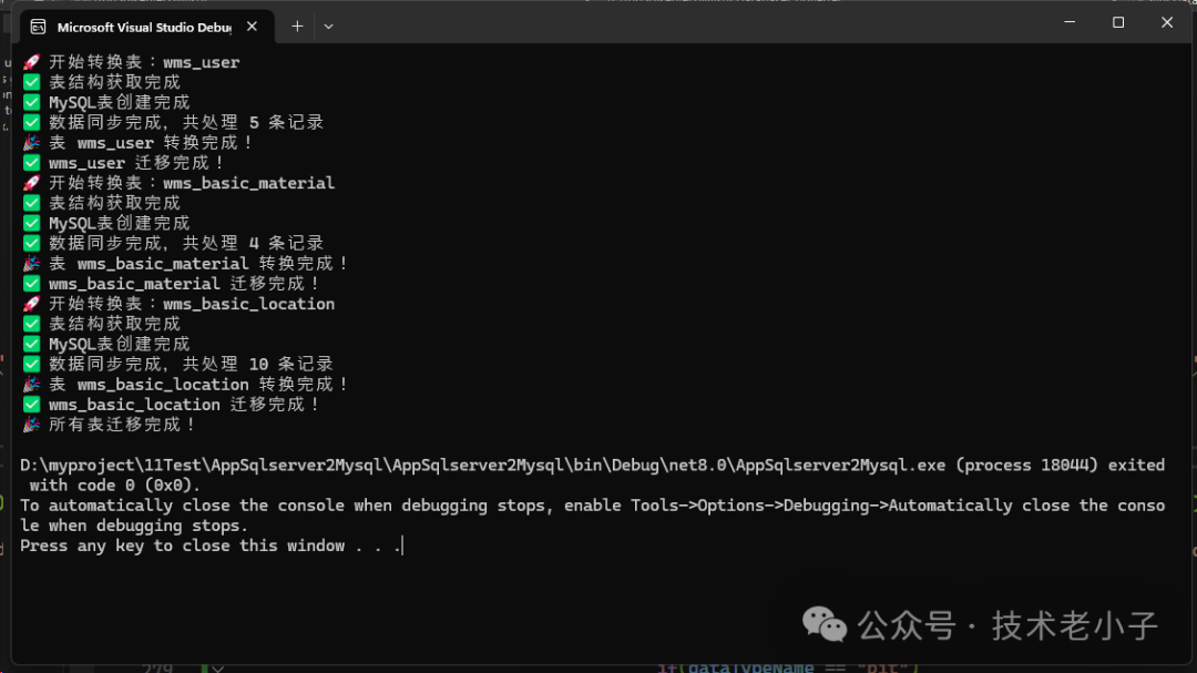 Console.WriteLine($"✅ {tableName} 迁移完成!");