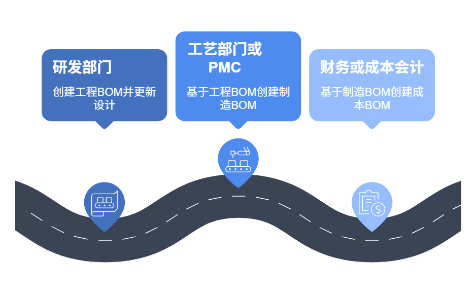 这三张BOM的使用阶段不同、责任人不同、维护系统不同,但必须在逻辑上打通。简单讲——