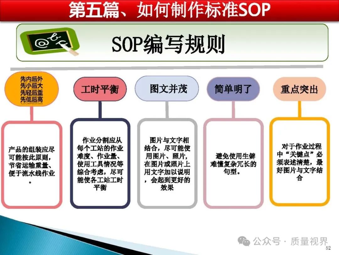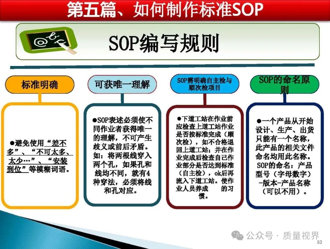 • 避免 “凭感觉做事”:新人无需依赖 “老员工口头传授”,按 SOP 操作即可达到基础合格线(比如工厂流水线工人按 SOP 组装零件,出错率可降低 70% 以上)。