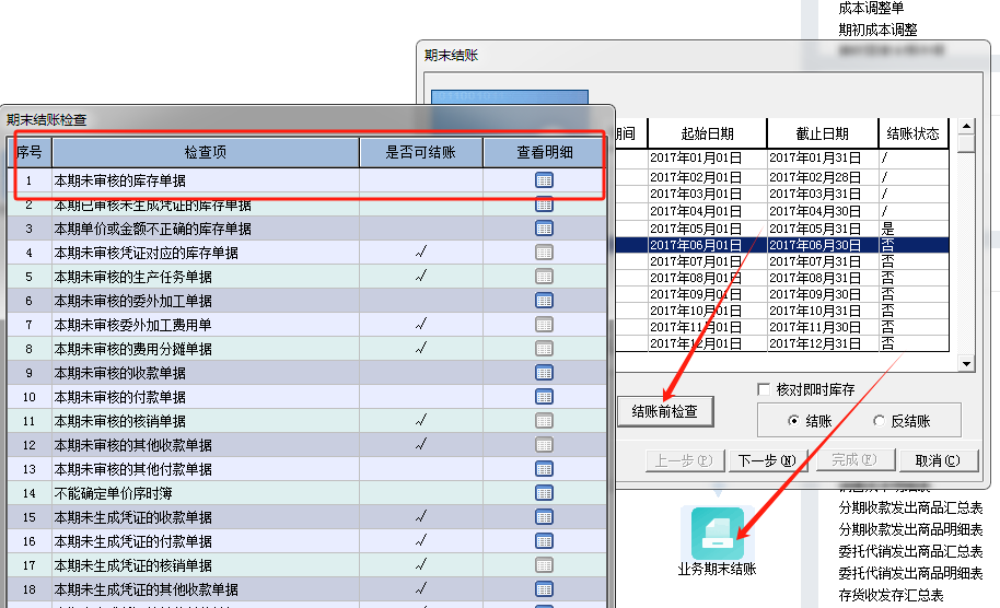 1. 有未审核的库存单据,在期末结账,结账前检查里面,本期未审核的库存单据,查看明细,就会看到当月未审核的单据,因为月底结账前会审核这些单据,所以之前已经核算过的存货出库核算就会有问题,所以存货出库核算的前提就是所有的单据都已经审核