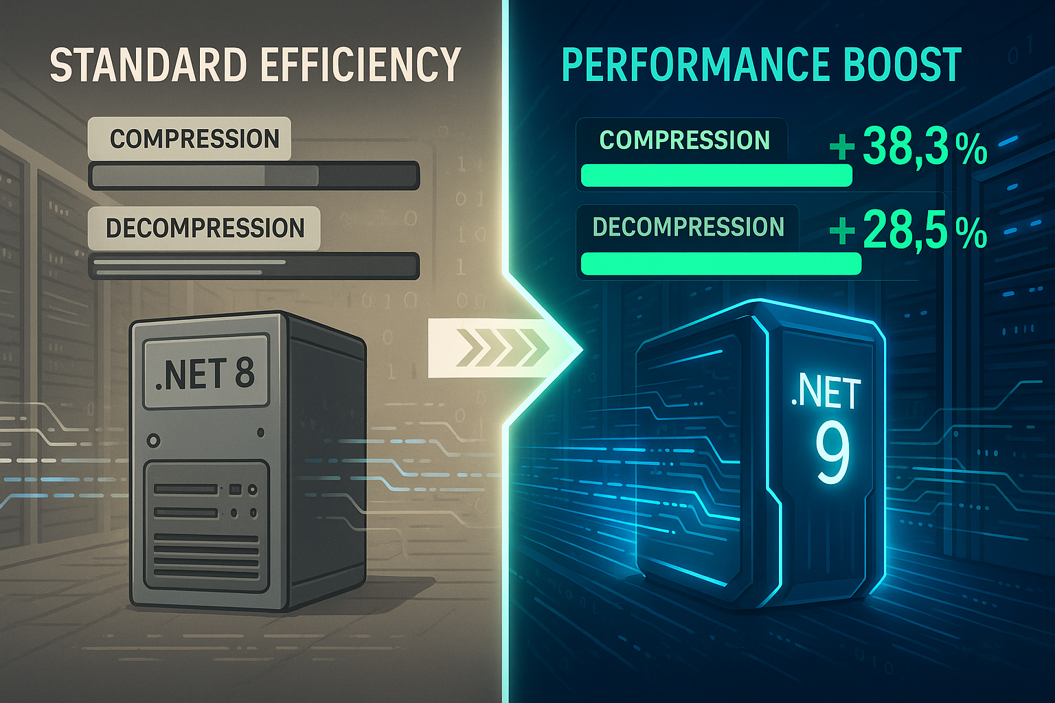 口说无凭,实践是检验真理的唯一标准。我专门编写了一个性能测试来直观地评测 .NET 9 和 .NET 8 在压缩与解压缩操作上的性能差异。