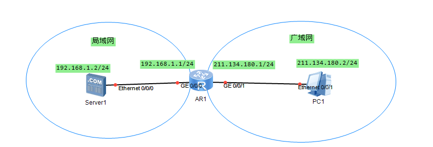 在如下拓扑中,pc1想要利用端口转发访问server1,应该有哪些流程?