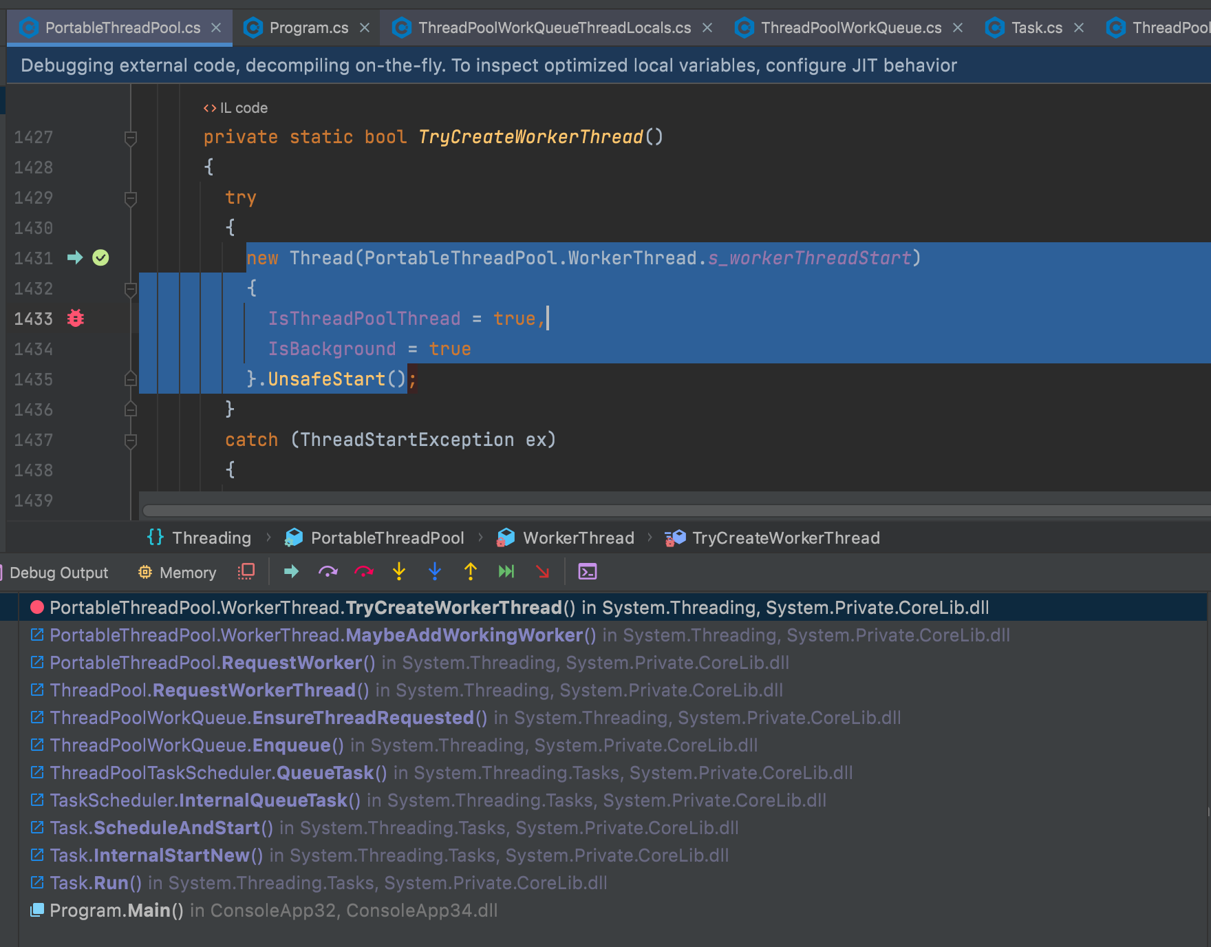 新的线程池实现位于 PortableThreadPool 中,原 ThreadPool 中的对外公开的接口会直接调用 PortableThreadPool 中的实现。