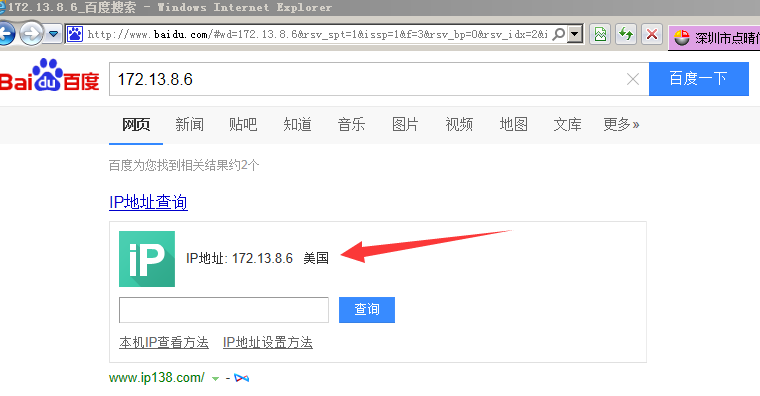 ![]() 简言之,电脑的IP地址如果在这三个网段之间:10.0.0.0到10.255.255.255、172.16.0.0到172.31.255.255、192.168.0.0到192.168.255.255,那么就是内部局域网标准IP地址,会被点晴OA系统识别为内网IP;如果不在这三个网段之间,就不符合内部局域网IP地址规范,会被点晴OA系统识别为公网IP。 以上面这个地址为例,在http://www.ip138.com上可以查到,此IP地址的确是公网IP: 综述: IP可以分为Public IP 和 Private IP(公共IP/私有IP),出现这种规划的原因在于IPv4所能表示的IP太少而电脑太多以至于不够用,然而只有Public IP才能直接连接上网络,所以对于那些公司、学校、政府机构等场所,就可以集中使用私有IP进行管理,而大家可以通过路由器智能转发共用一个Public IP去连接上公网,这样,就省下了许多宝贵的Public IP。 Public IP:公共 IP ,经由国际互联网组织 INTERNIC 所统一规划的 IP,有这种 IP 才可以连上 Internet ; IP地址分类中常用的有A\B\C类,每类IP中都规划了一段私网IP,除了这些私网外的IP都是公网IP。