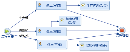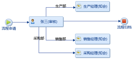 根据需要判断的知会人数量,插入相同数量的多个审核节点,审核人相同、知会人不同,然后按照知会人的情况,在审核节点前设置审核跳转即可。