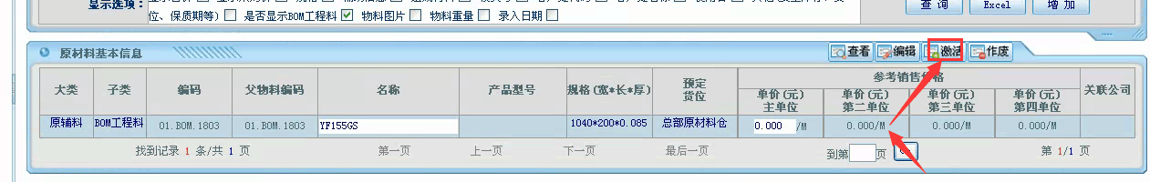 [点晴模切ERP]生产BOM界面显示有对应的料号,点进去查看却没有,如何解决。