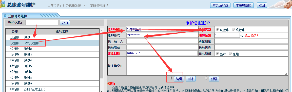 选择对应的账户,修改对应内容,点击”编辑“按钮完成,如下图所示: