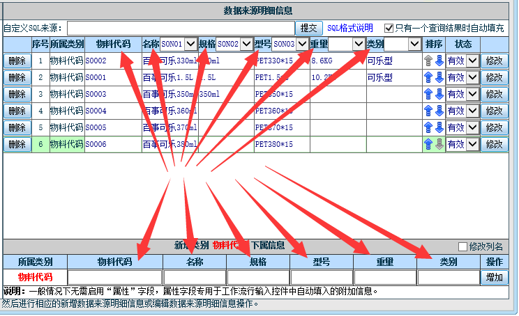 :工作流自定义SQL数据源时,如何更改各个数据列的名称?现在显示的是属性1、2之类的。