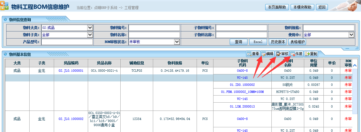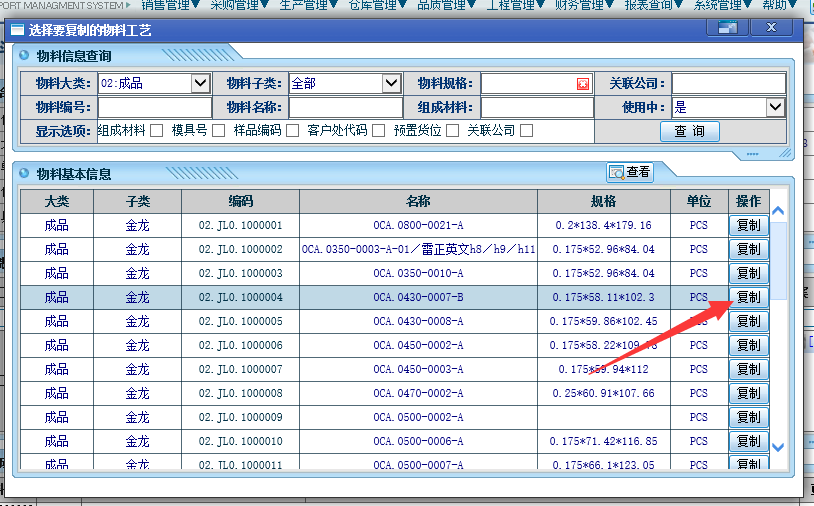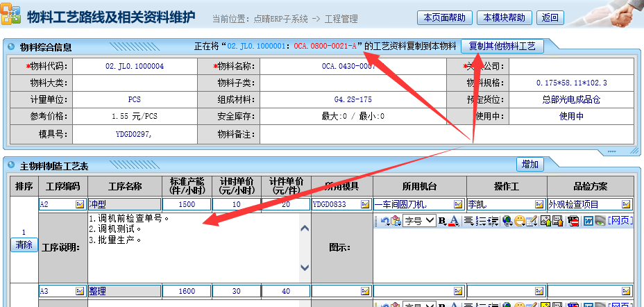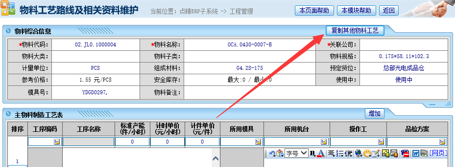 请问点晴模切ERP中是否有物料BOM和工艺资料复制功能?在哪里?
